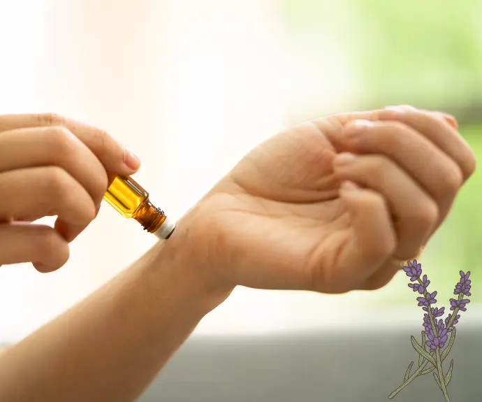 Combina 1 gota del aceite esencial de Lavanda con 1 gota de algún aceite portador vegetal: Coco, almendras, moringa, oliva. etc. Y aplica en la zona deseada